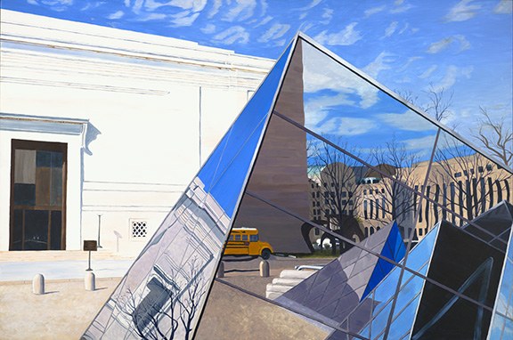 Steinem's Architectural scenes are set in a host of locations, including Montreal, Boston, Manhattan, and Washington D.C. His soaring Cityscapes and historically significant buildings are usually composed on site, with reference sketches and photos. While composing a painting people on the street have often approached him, to gaze at the scene he's composing and remark that they have never noticed those elements before. That's the magic of his architectural pieces, finding the juxtaposition of old and new within the sweeping, sometimes surreal, lines of urban landscapes. Steinem accepts commissioned work on architectural pieces, with prices based on the complexity of the subject and the canvas size. Please contact the artist for details.